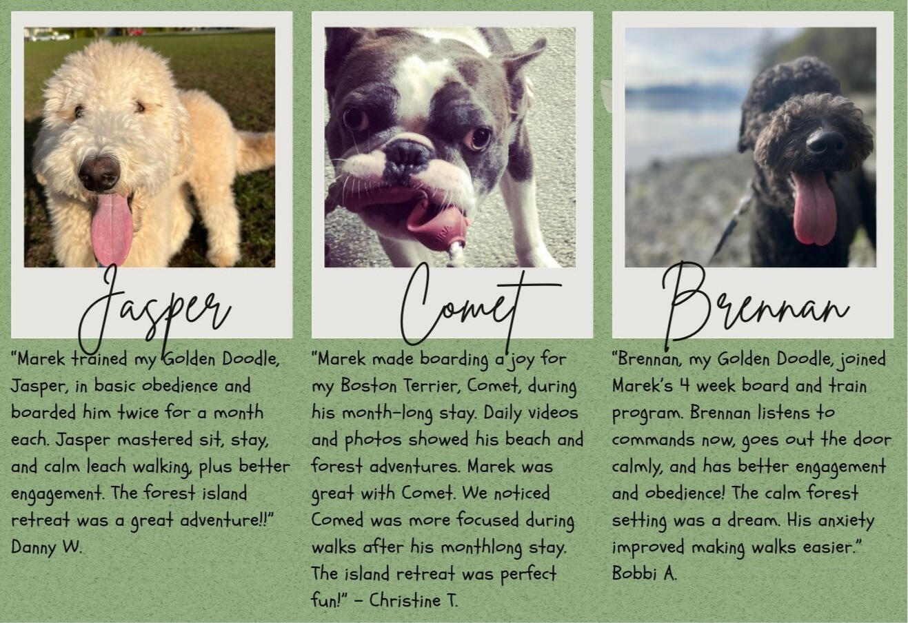 Hi,I’m Marek! I love helping my friends’ dogs become well-mannered and trained with fun, game-based training. I’d love to help your puppy or adopted dog learn to sit, stay, and walk nicely on a leash.My 5-acre retreat near Salt Spring Island’s trails and beaches is perfect for training and exclusive boarding.Book your free consult to get started!